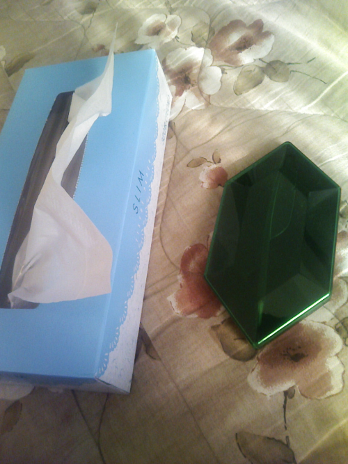 さっそく写真を撮ってのっけてみました。実際に見たらもっと透き通っててキレイなんですよ!横のティッシュは大きさがわかるように置いてみました^^